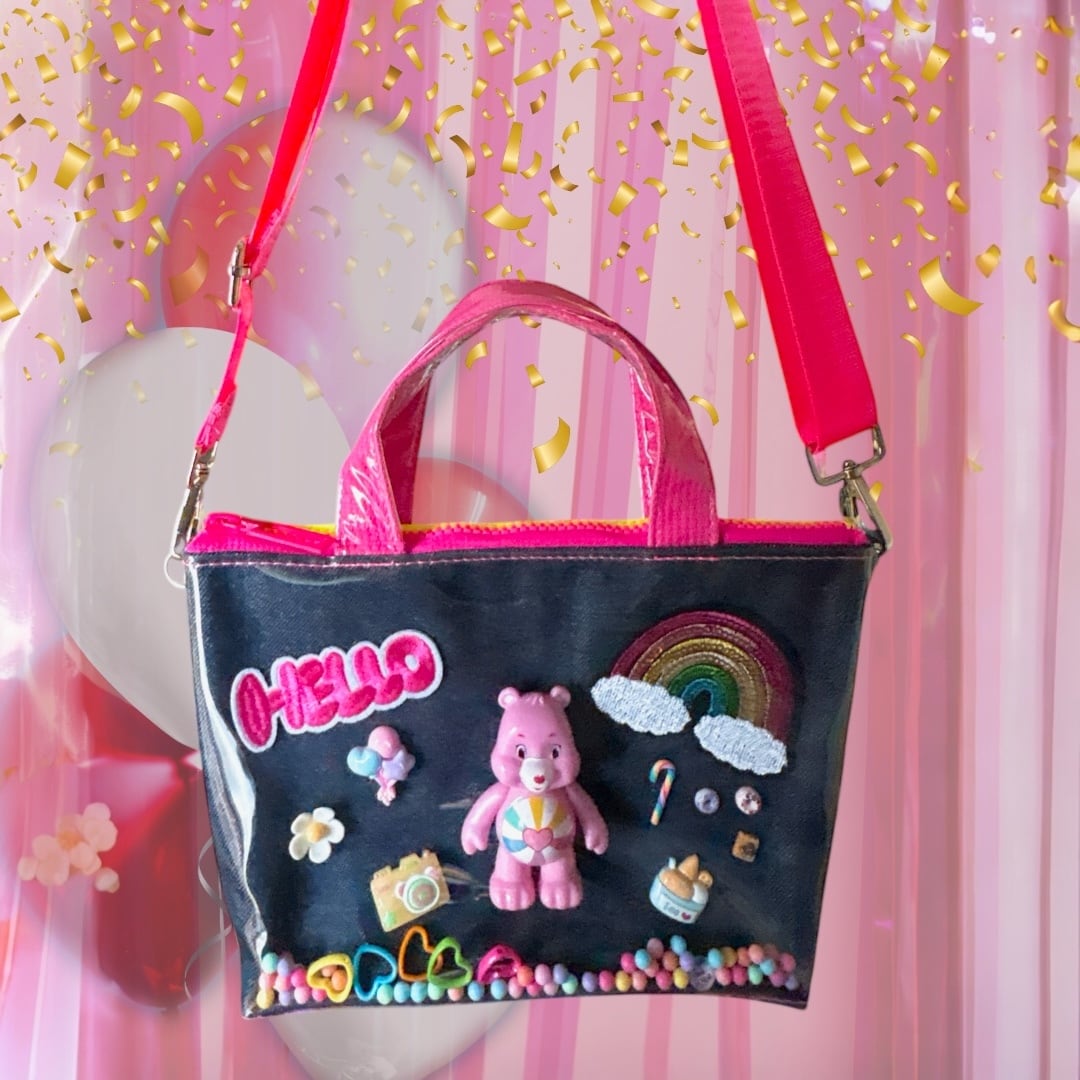 デニム生地に可愛いクマのフィギュアや可愛いパーツを入れてみました!